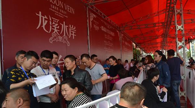 龍溪水岸售樓中心外排了長長的隊伍,門庭若市,在等候選房的時候,客戶也在彼此討論樓層的選擇、居住的舒適度等問題。售樓中心里面,客戶詳細詢問房源信息及價位,有的在沙盤邊看房,有的在認真研究戶型模型,氣氛十分活躍。此次龍溪水岸(郡園)認購共推出104套房源,戶型面積在91~133㎡,而排隊認購的客戶則遠遠超出這個數(shù)據(jù)。