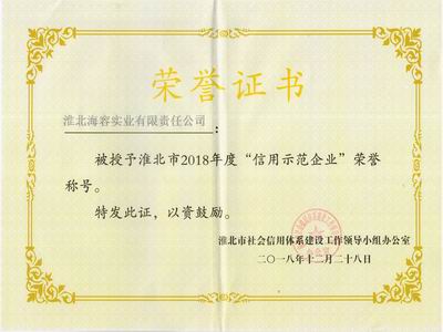 獲淮北市2018年度“信用示范企業(yè)”榮譽(yù)稱號(hào)