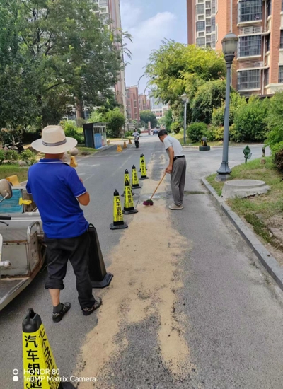 經(jīng)過對(duì)路面的修補(bǔ),小區(qū)道路煥然一新,為居民創(chuàng)造了安全出行的生活環(huán)境。