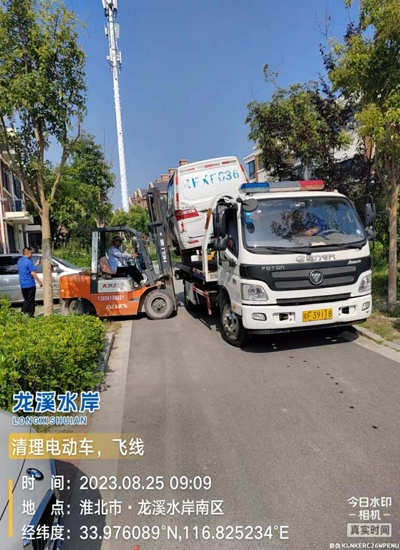 近日,龍溪水岸物業(yè)聯(lián)合執(zhí)法相關(guān)部門共同清理小區(qū)內(nèi)的私拉飛線和“僵尸”車輛等。