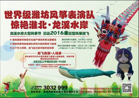 風箏起源于中國,已有2400年歷史,是除指南針、造紙術(shù)、印刷術(shù)和火藥之外的中華民族第五大發(fā)明。濰坊誕生了世界上第一只風箏,并將風箏文化延續(xù)至今,成為世界風箏文化交流的中心,被世界人民稱為風箏的故鄉(xiāng),濰坊風箏作為中國文化的精粹,種類齊全、千姿百態(tài),自唐宋至明清一直是皇家欽點貢品。本屆龍溪水岸風箏節(jié)由濰坊市工藝美術(shù)協(xié)會風箏大師手工扎制,工筆手繪,極具民族特色。此次風箏節(jié)表演大賽既有代表世界風箏之都濰坊特點的傳統(tǒng)巨型長龍風箏,還有代表國外的大型軟體風箏,世界級奇趣大型風箏表演讓市民通過放風箏、觀風箏來充分享受風箏節(jié)的非凡魅力,讓淮北市民充分享受風箏文化盛宴。